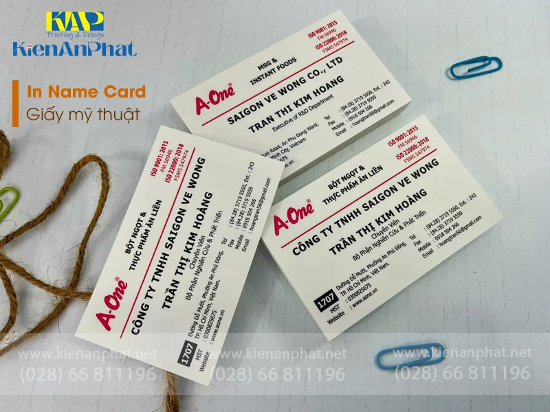 Để sở hữu những ấn phẩm in trên giấy mỹ thuật với chất lượng hàng đầu, màu in sắc nét, và dịch vụ in nhanh đáng tin cậy, đặc biệt là In Name Card/Danh Thiếp giấy mỹ thuật giao liền trong 4 tiếng, giải pháp tổng thể của bạn chính là liên hệ ngay với In Kiến An Phát.